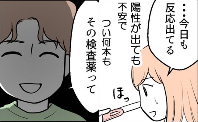 妊娠を待ち望んでいたアマさん。ある日、妊娠検査薬に陽性が出て、すぐに夫に報告しました。しかし、不安が拭えず……。