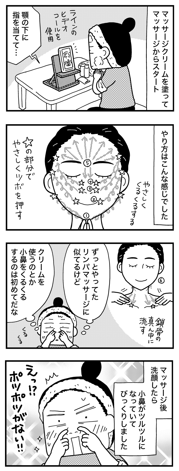 また、今回使ったクリームは汚れを取る効果もあったので、毛穴の詰まりもきれいに取り除いてくれました。毎日の洗顔で丁寧に洗っても落ちなかった小鼻のポツポツ。まさか憎っくきアイツを消すことができるとは……。ツルツルの小鼻は、かなり爽快でした!