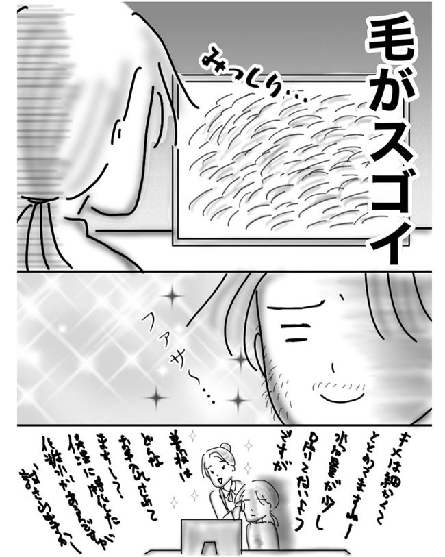 肌のキメが細かいって……どこをどう見ても毛しか映っていなかったんです。美容部員のお姉さんはさすがプロフェッショナル! 毛については1mmも触れませんでした。